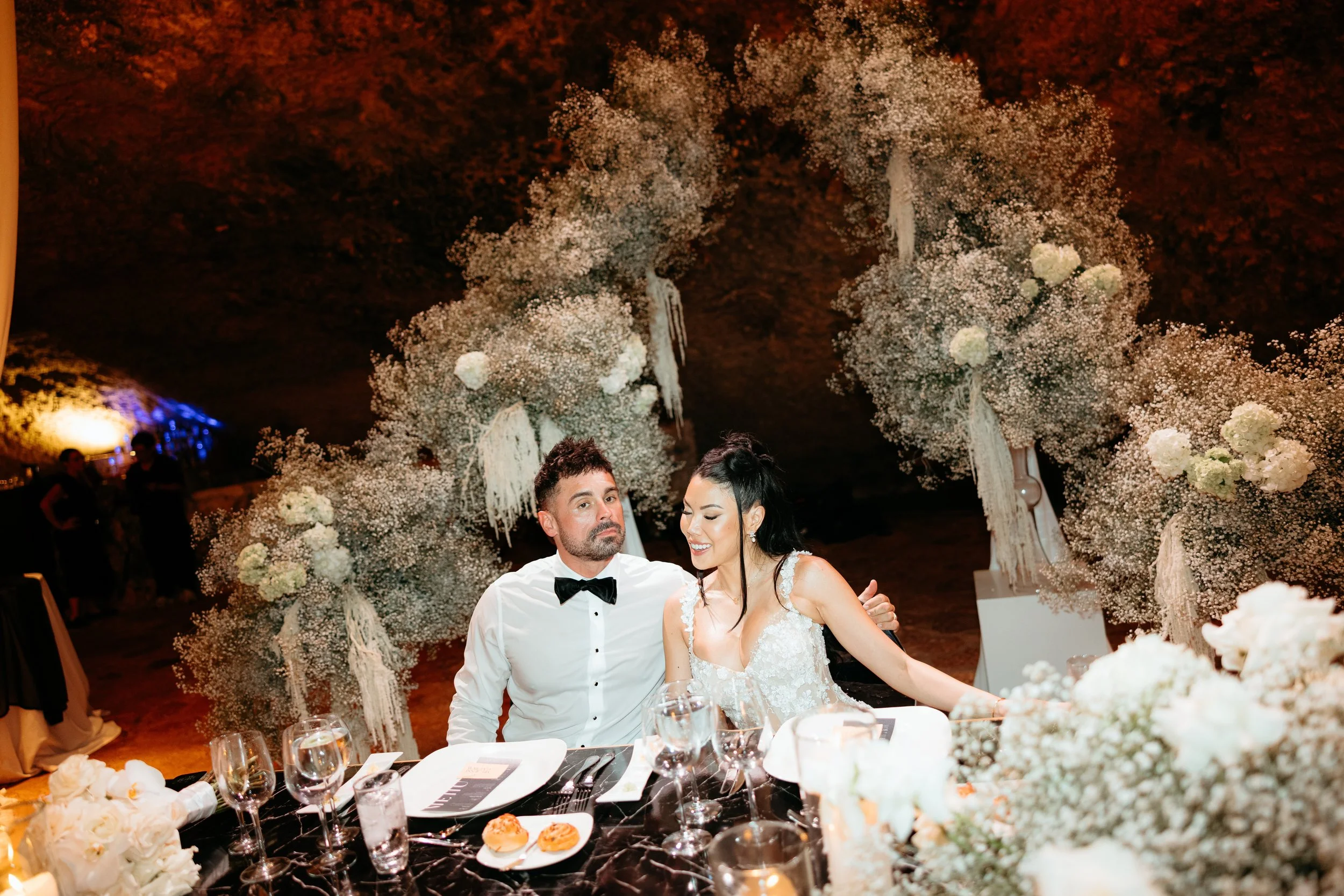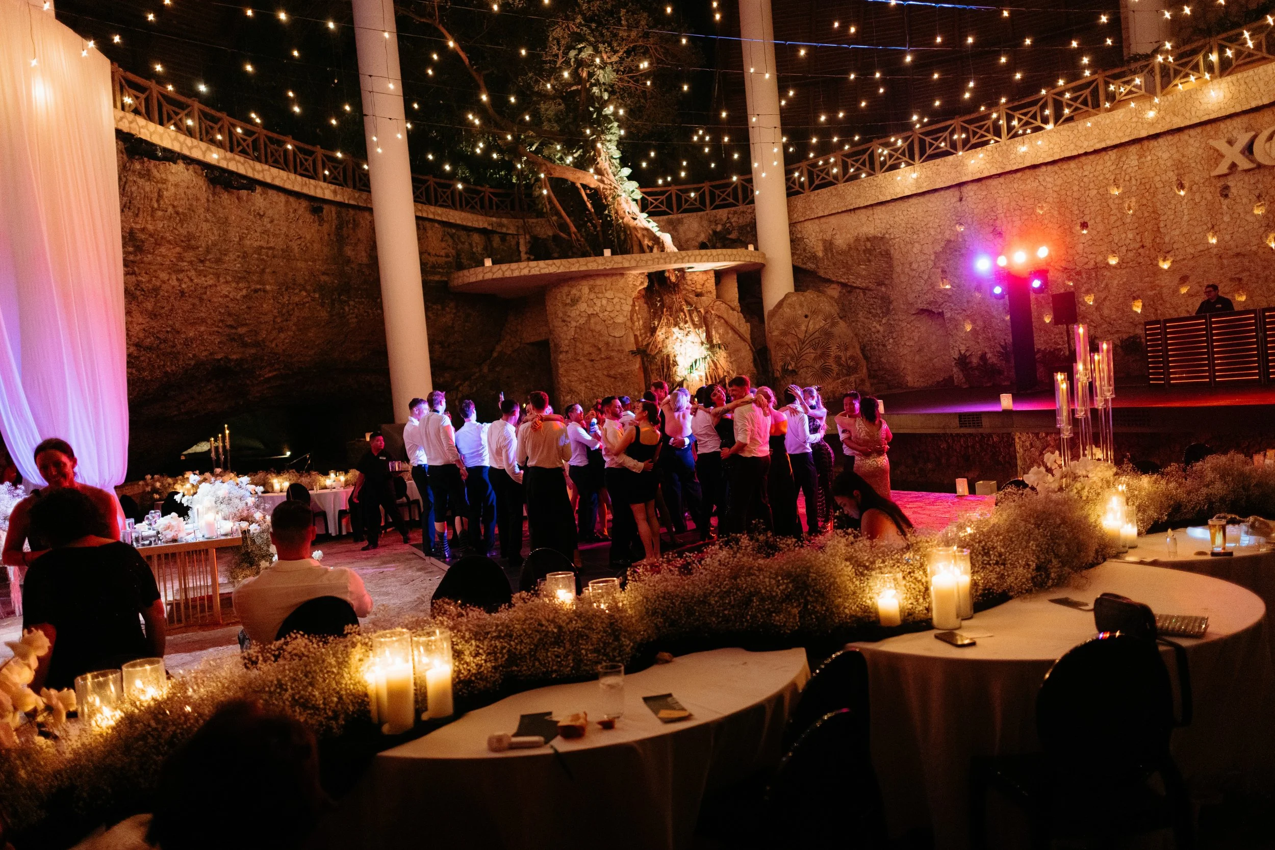 Cindy & Jesse’s wedding at @xcaretpark was the epitome of classic elegance with a glamorous touch — a celebration where every element came together to create a sophisticated and timeless atmosphere. From the majestic ceremony to the dazzling reception, the design showcased a refined blend of classic roses, soft neutral tones, and golden accents that brought their dream vision to life in the heart of the Riviera Maya.